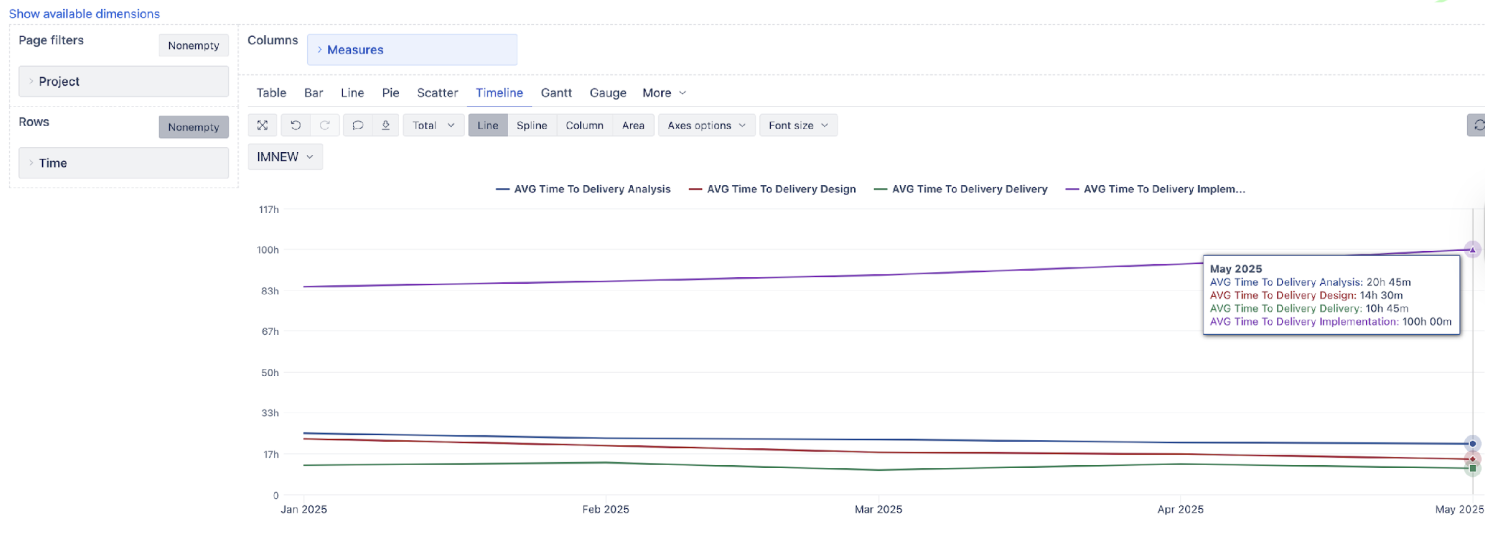 Combining SLA tracking with eazyBI reporting gives a clearer view of how time is distributed across the process. It connects real-time operational data with longer-term analysis, helping teams understand what’s happening and where improvements are needed.